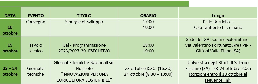 HomeCircolari CONAFProgramma formazione ottobre 2025 Programma formazione ottobre 2025 9 Ottobre 2025 formazione Si rendono noti i seguenti eventi formativi : GAL Colline SalernitaneDownload Programma-Giornate-Tecniche-Corilicoltura-2025_08102025 (1)Download